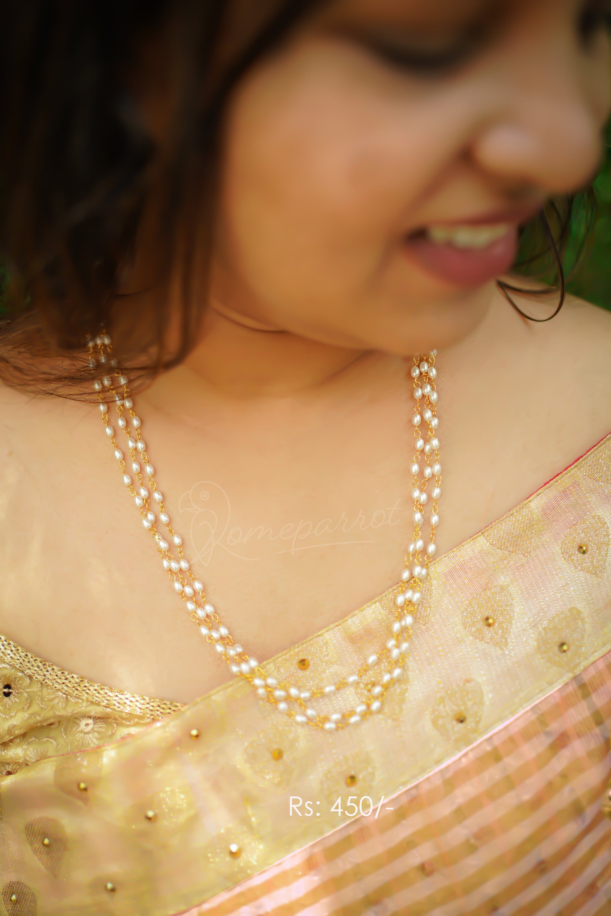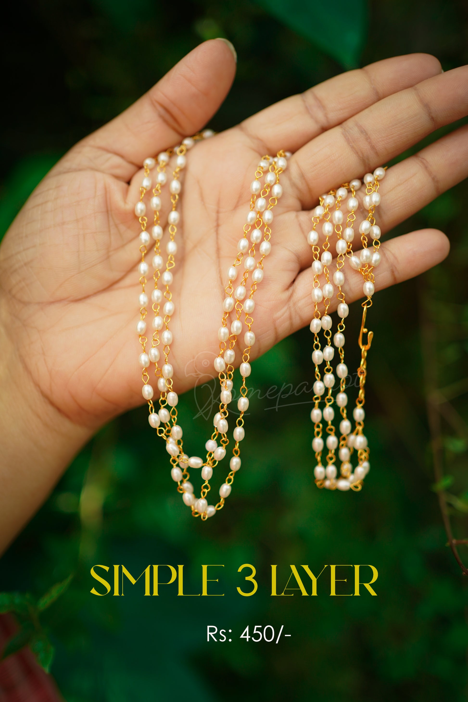 Three Layer Pearl Full White Chain