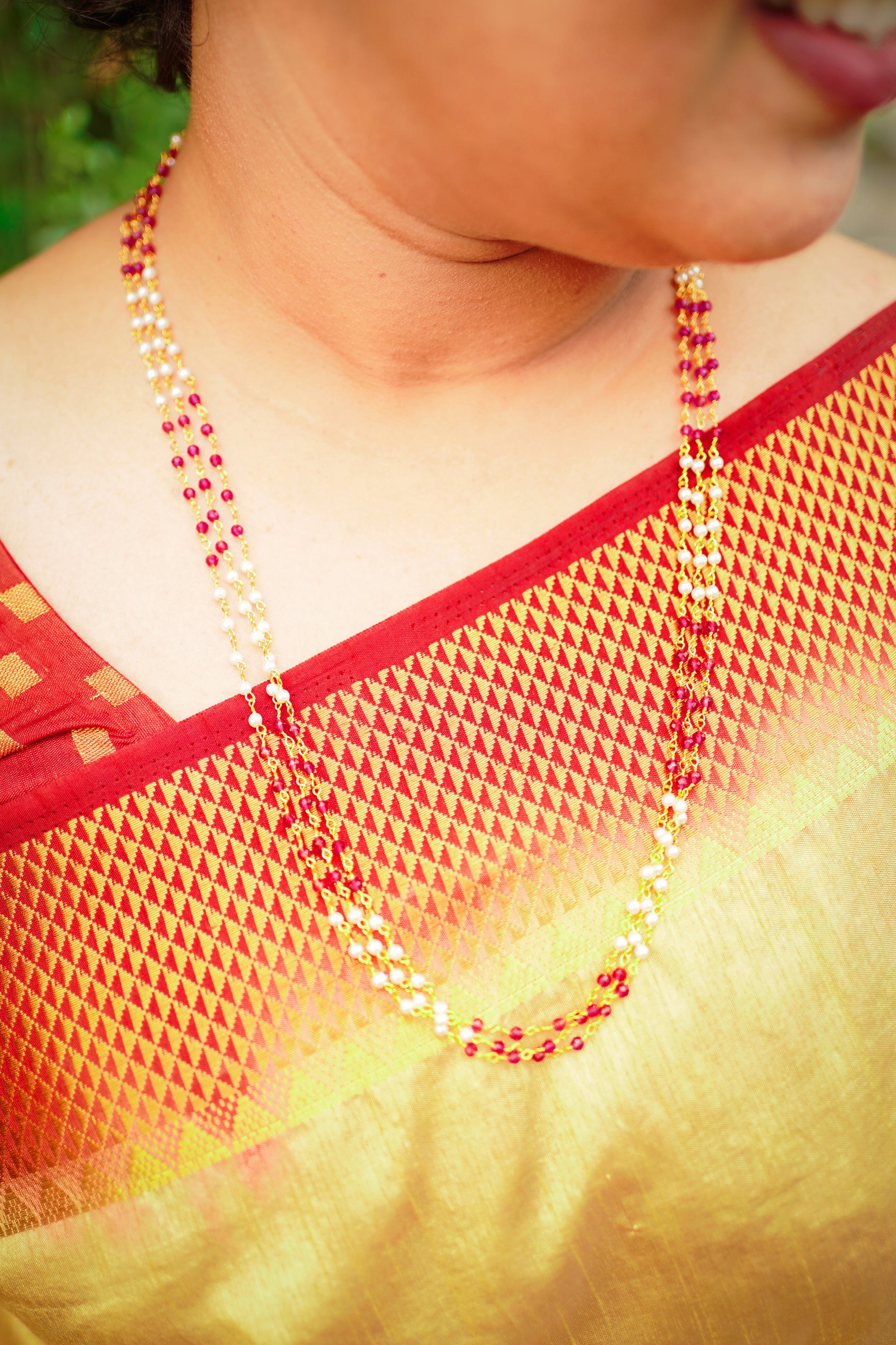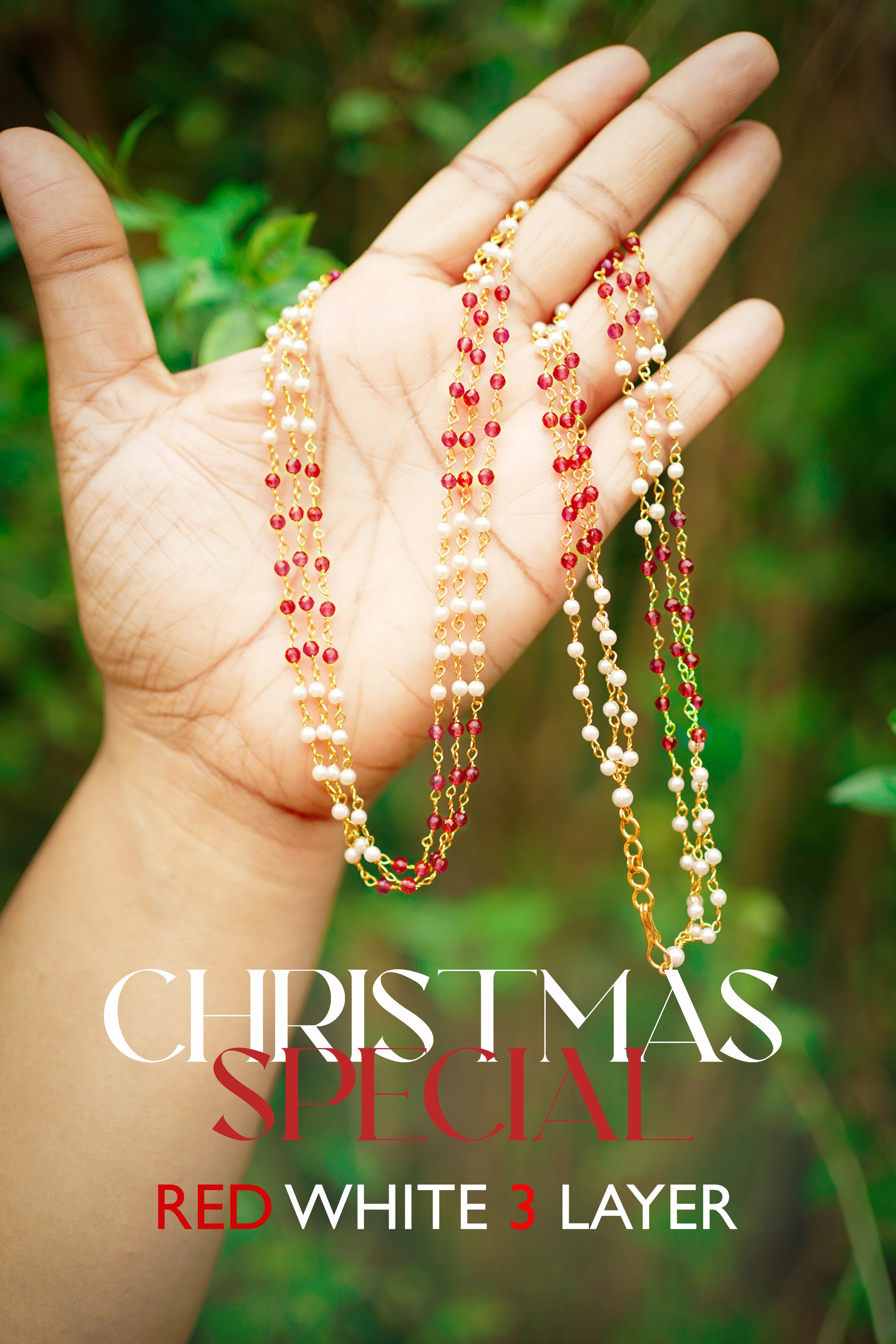 Three Layer White & Red Pearl Necklace