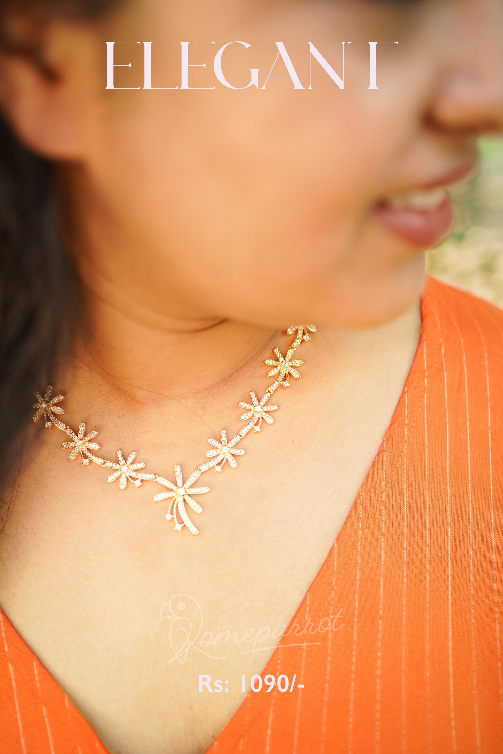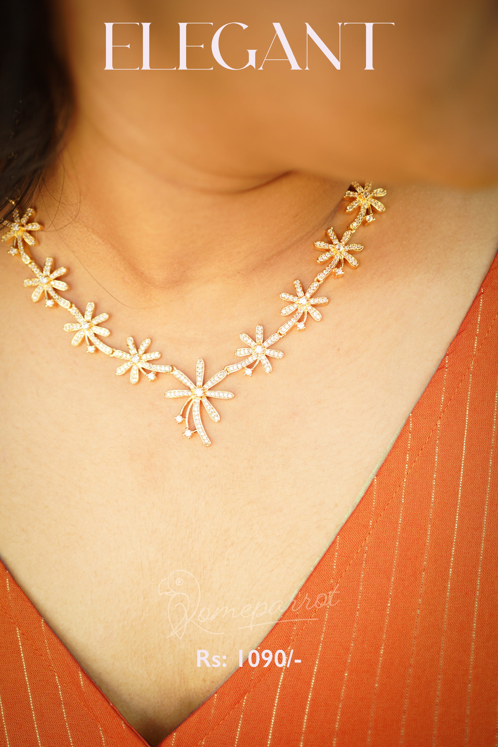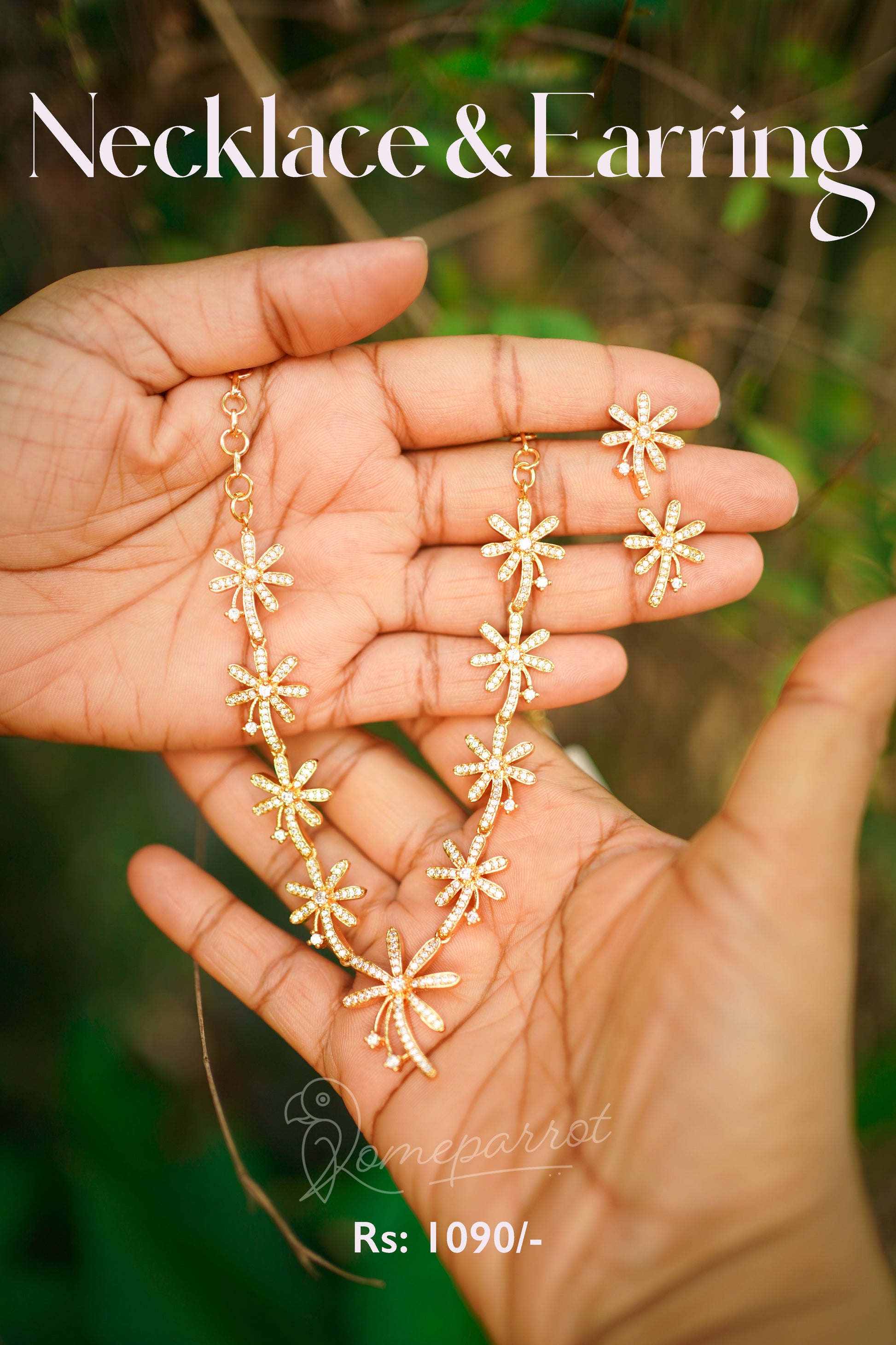 Full white gold plated floral pattern necklace set