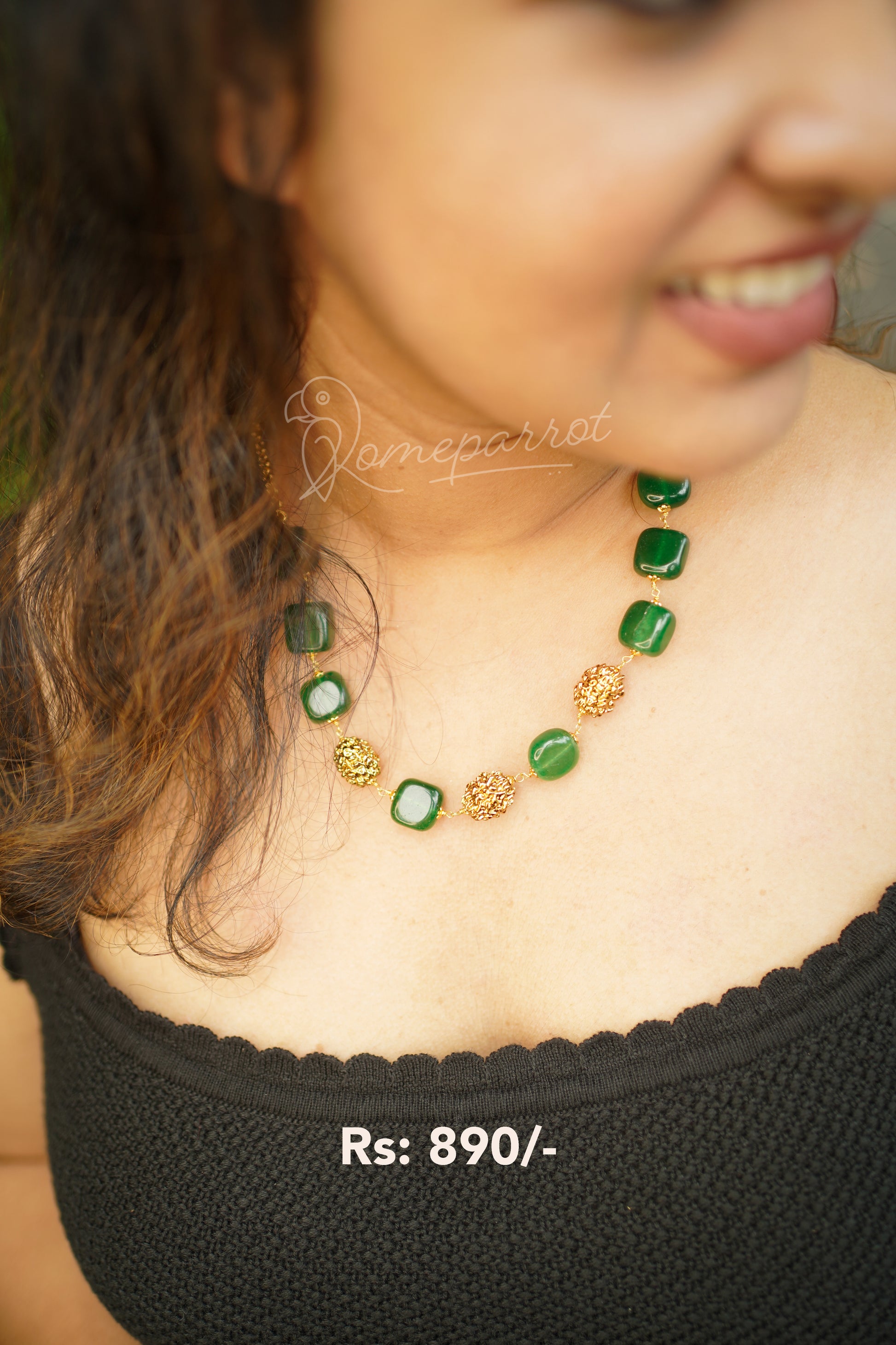 Green Bead stone neckalce